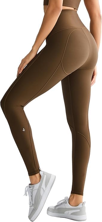 Orolay Resistance Leggings for Women Full Length Sculpting Compression Leggings with Built in Bands Tummy Control Yoga Pants Brown