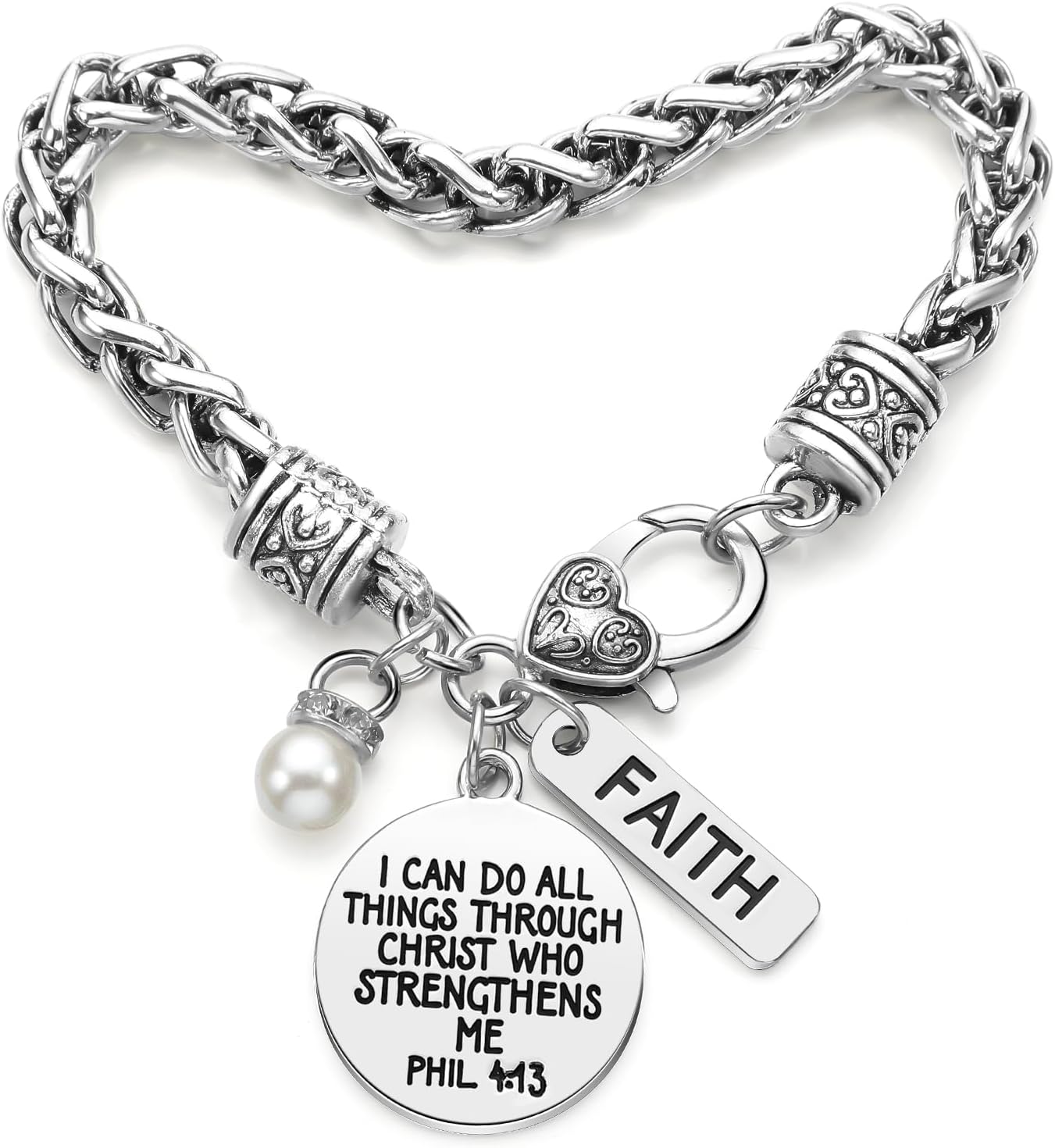 Cunno Religious Bible Verse Bracelets for Women Phil 4: 13 Her Scripture Quotes Bracelet Faith Christian Blassing Jewelry Christmas Birthday Inspirational Gifts for Women Mother Daughter