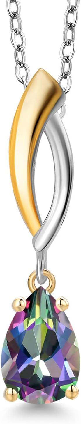 Gem Stone King 925 Silver and 10K Yellow Gold Green Mystic Topaz Pendant Necklace for Women | 1.00 Cttw | Gemstone November Birthstone | Pear Shape 8X5MM | With 18 Inch Silver Chain