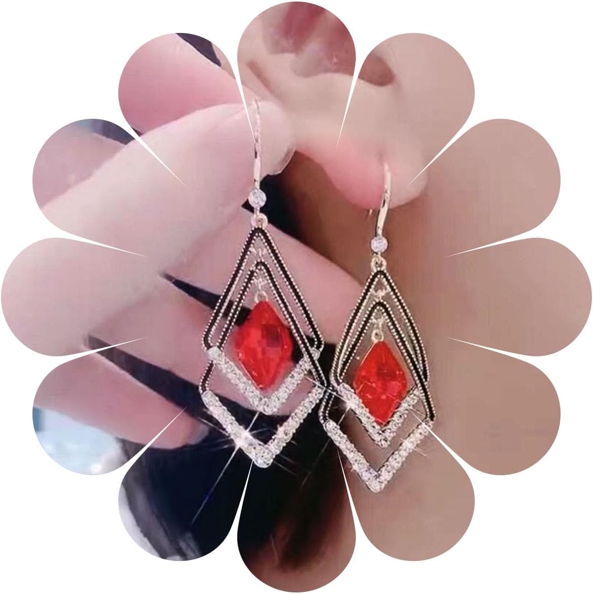 Vintage Crystal Ruby Drop Earrings Rhinestone Square Earrings Red Topaz Dangle Earrings Ruby Crystal Wedding Earrings Jewelry for Women (Red)