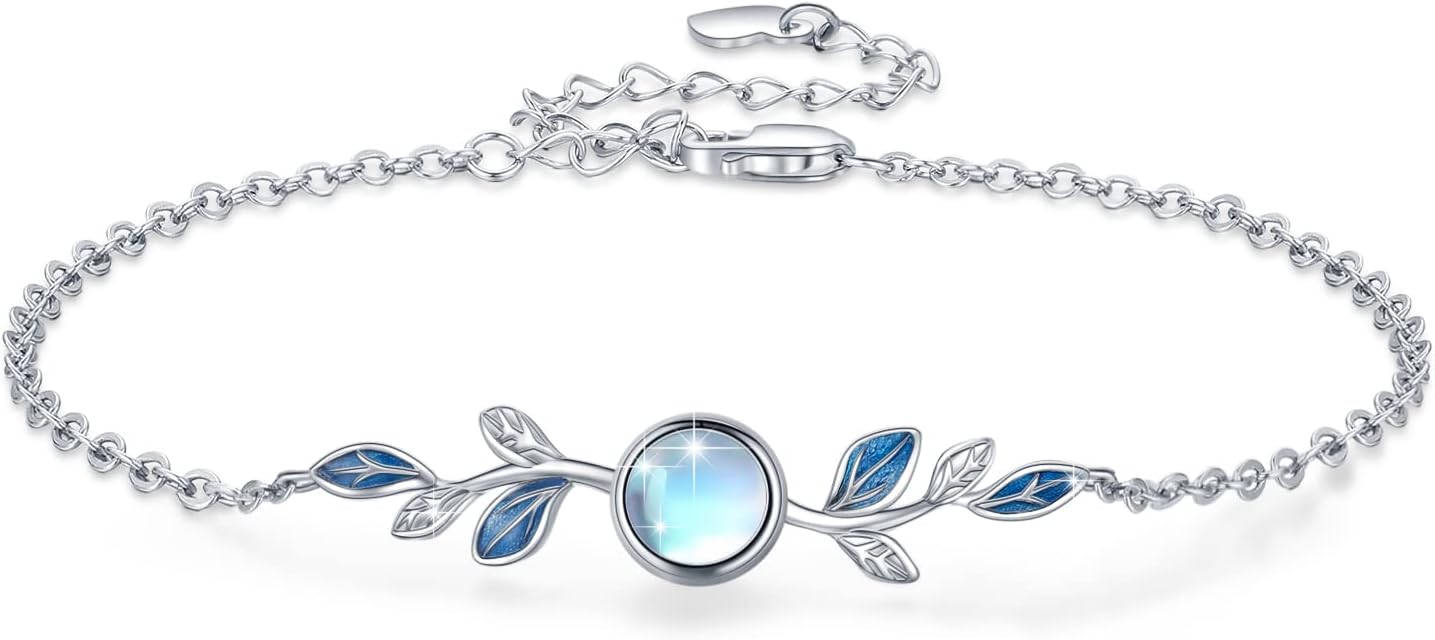 CUOKA MIRACLE Leaf Moonstone Bracelet S925 Sterling Silver Moonstone Leaf Bracelets For Women Olive Leaf’s Jewelry Gifts For Women Mother's Day Jewelry