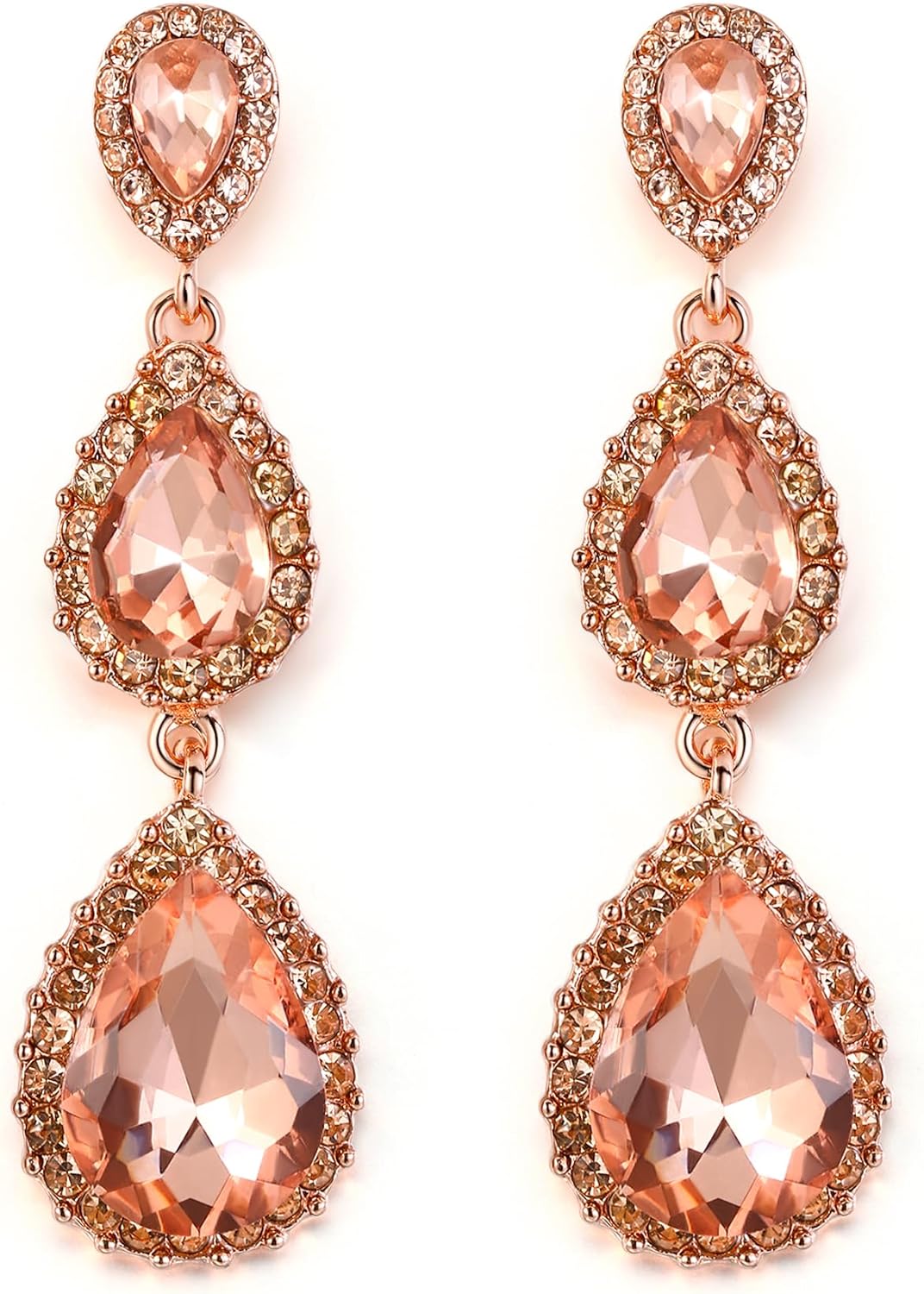 BriLove Gorgeous Shiny Rhinestones Teardrop Chandelier Long Dangle Earrings for Wedding Bridal Party Prom Jewelry Accessories