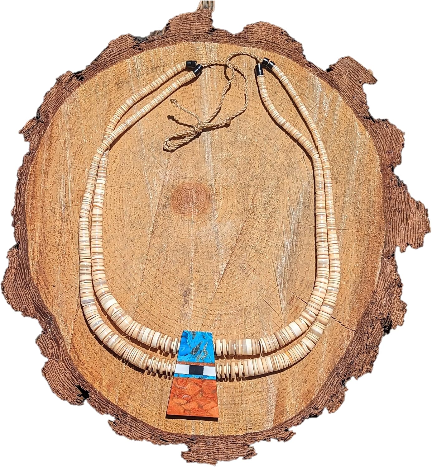 Native American Necklace RARE Hopi Handmade Inlaid Turquoise Coral Pendant Heishi Beads Southwest Jewelry Museum Quality Kai Onsae