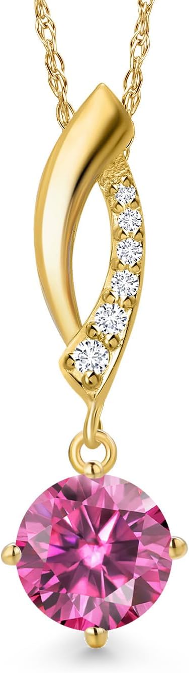 Gem Stone King 10K Yellow Gold Customized and Personalized Round 6MM Gemstone Birthstone and Lab Grown Diamond Pendant Necklace for Women With 18 Inch Chain