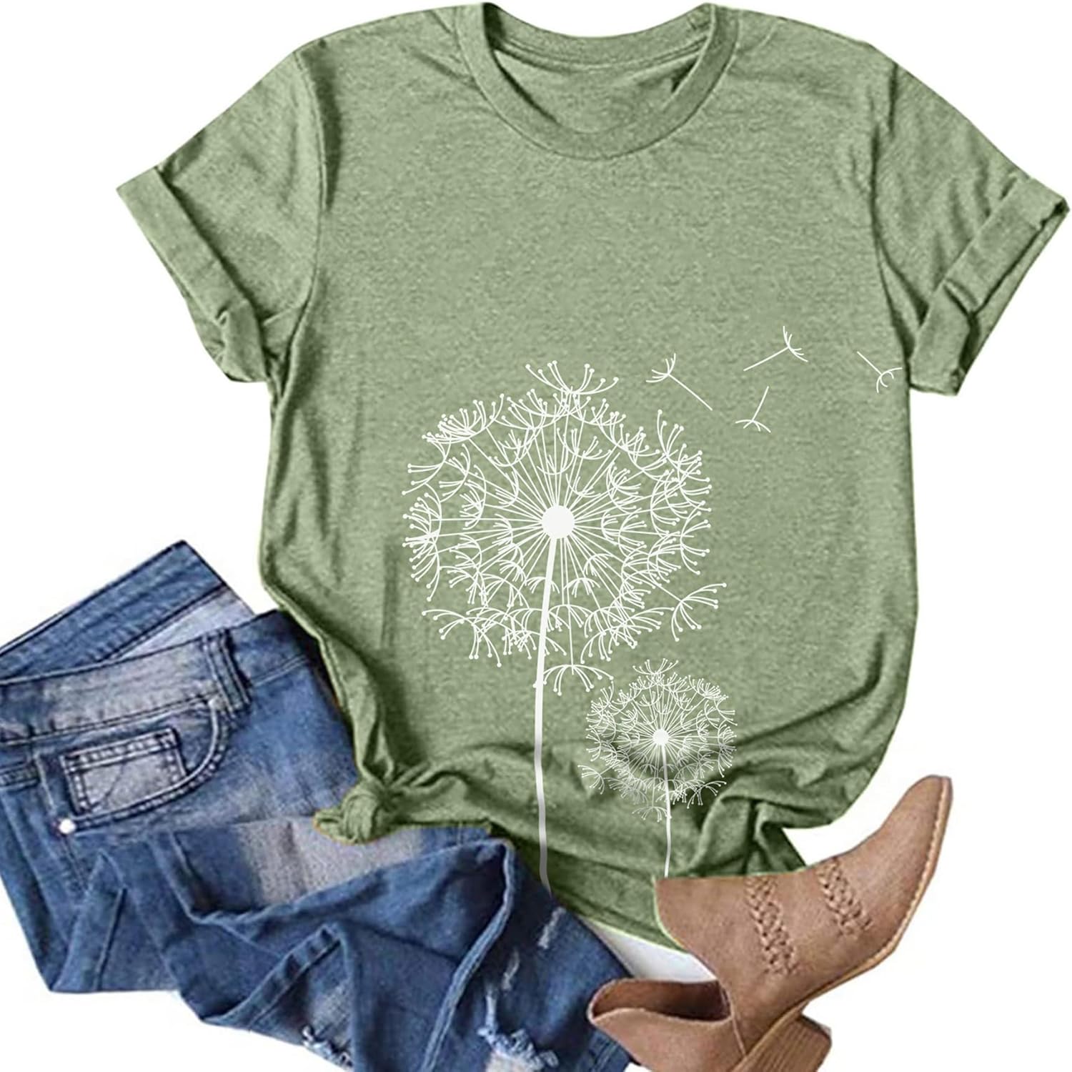 T-Shirts for Women,Dandelion Shirt Round Neck T-Shirts Loose Blouse Tops Girl Graphic Casual Tees
