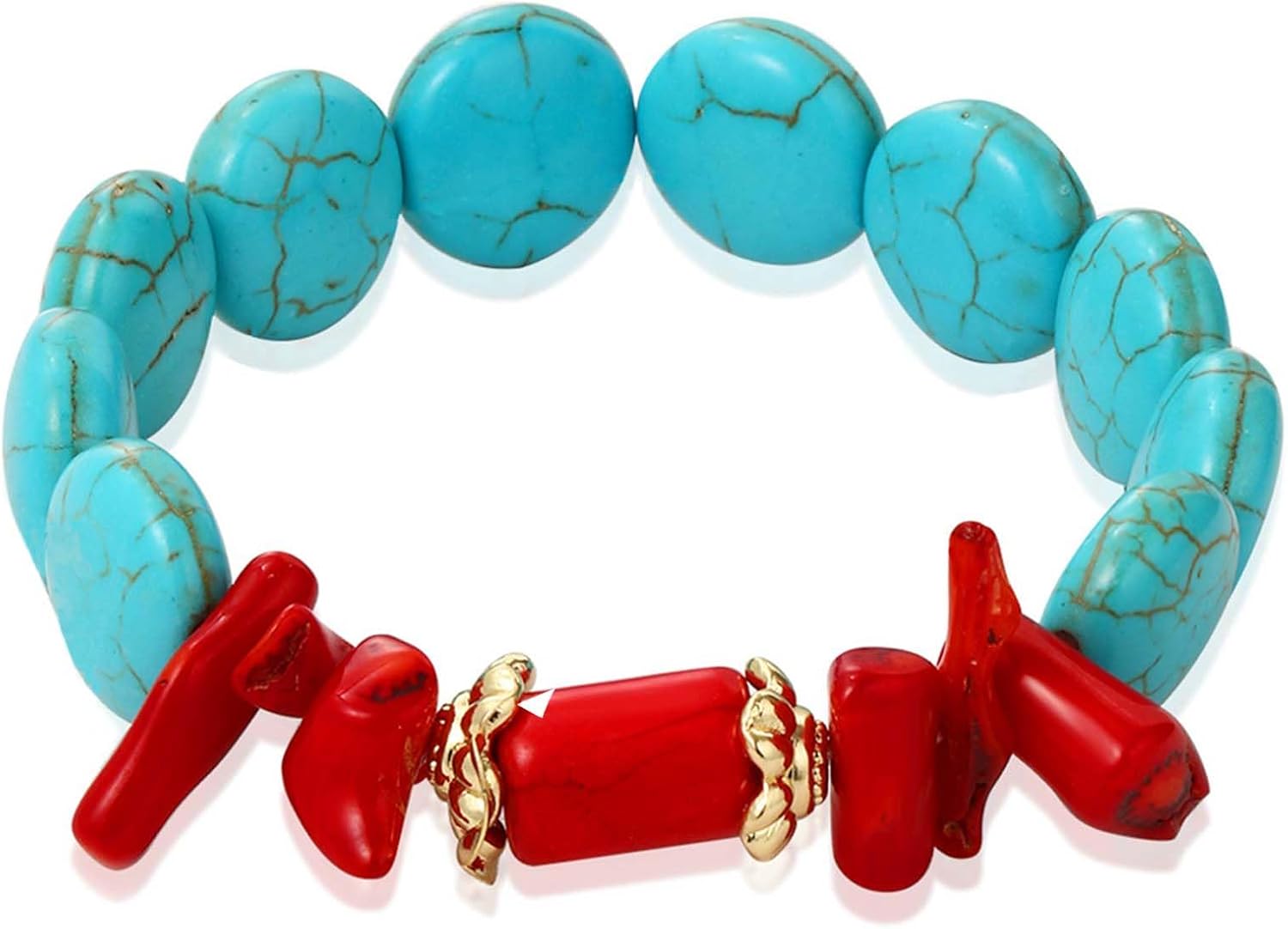 HETICA Oval Turquoise Bracelet for Women Irregular Turquoise Red Turquoise Stretch Bracelets Jewelry
