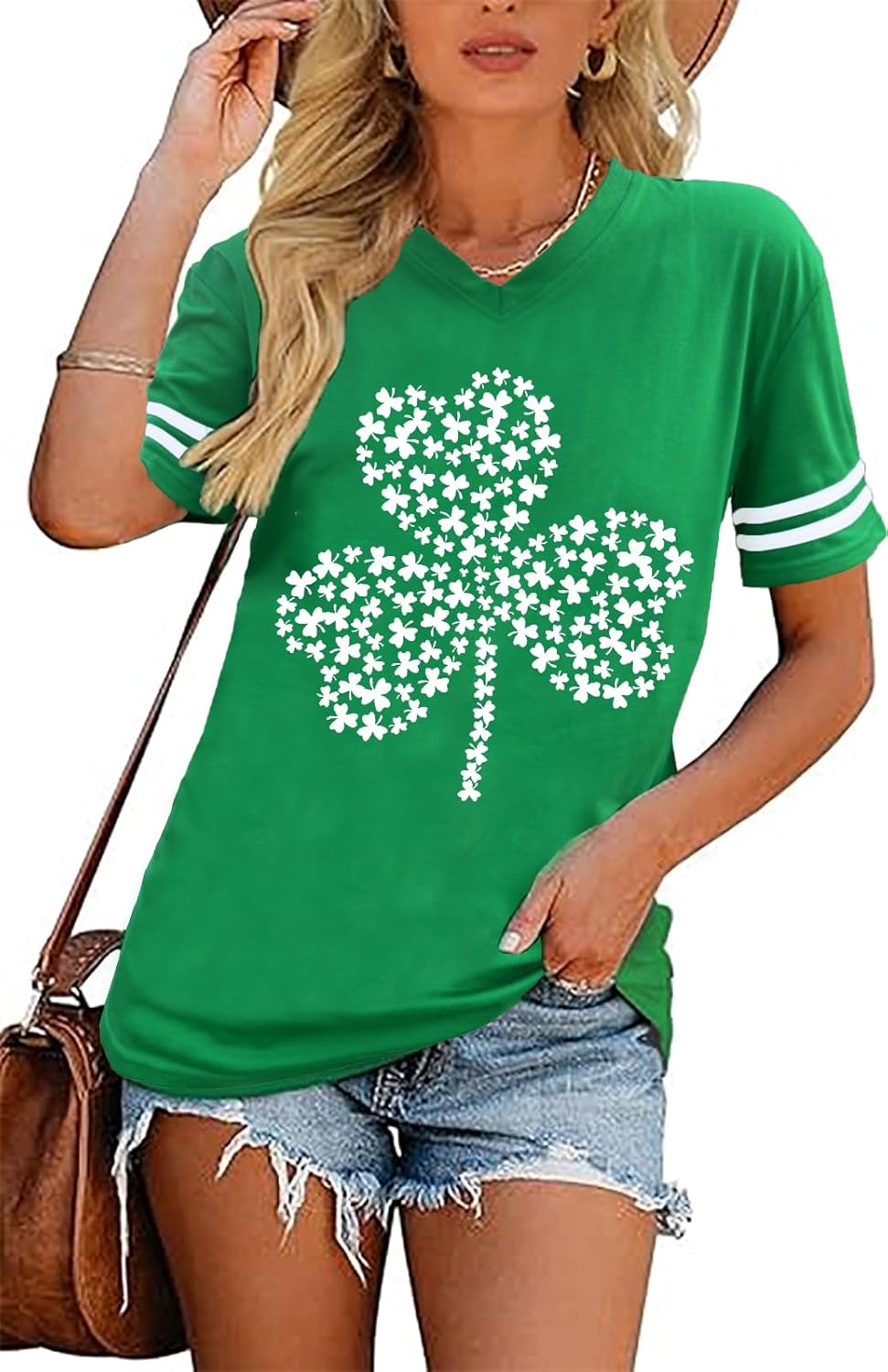 OJLPHH St. Patrick's Day Shirt Women Shamrock Graphic Tee V-Neck Short Sleeve Lucky Irish T Shirt
