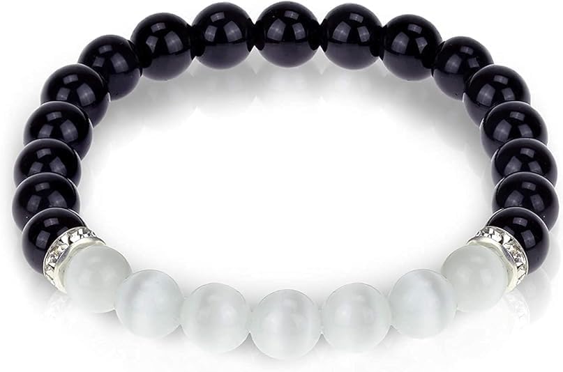 8mm Black Obsidian and Selenite Healing Crystal Bracelet for Women & Men – Natural Gemstone Bead Stretch Bracelet for Protection, Negative Energy Cleansing, Chakra Balancing Gift