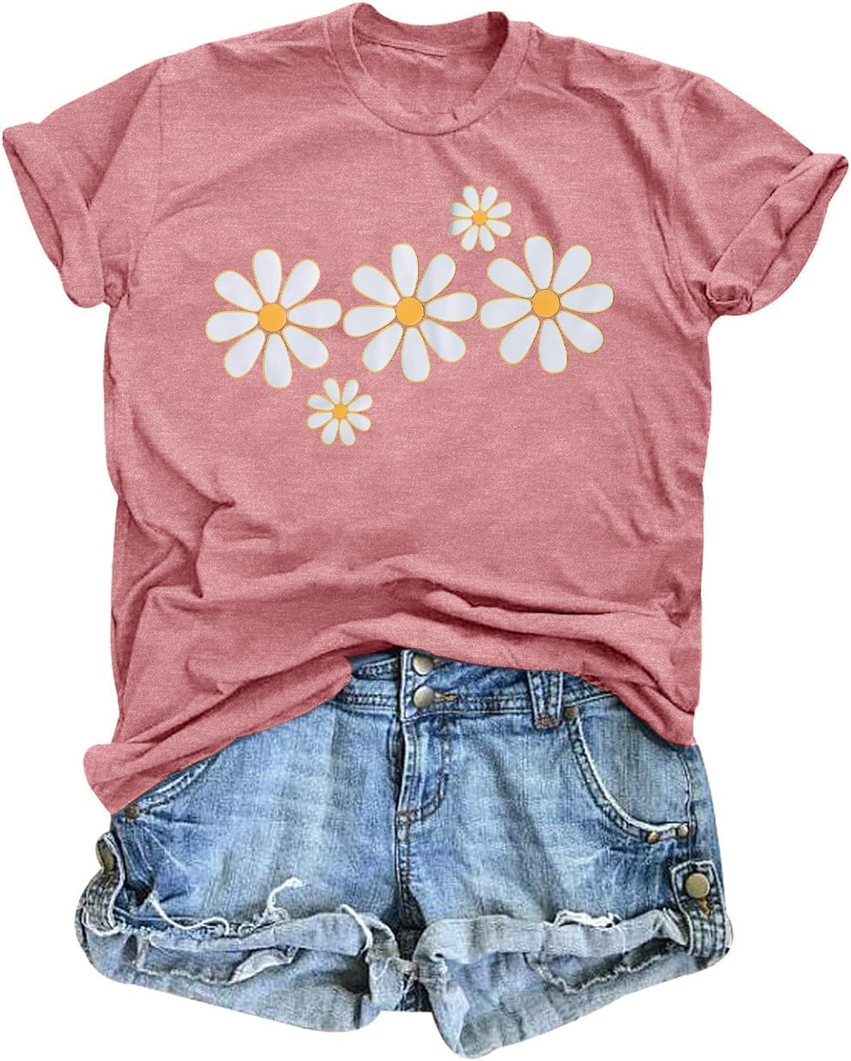 LUKYCILD Daisy Shirts for Women Graphic Tees for Women Short Sleeve Summer Shirt Tops Faith Shirts