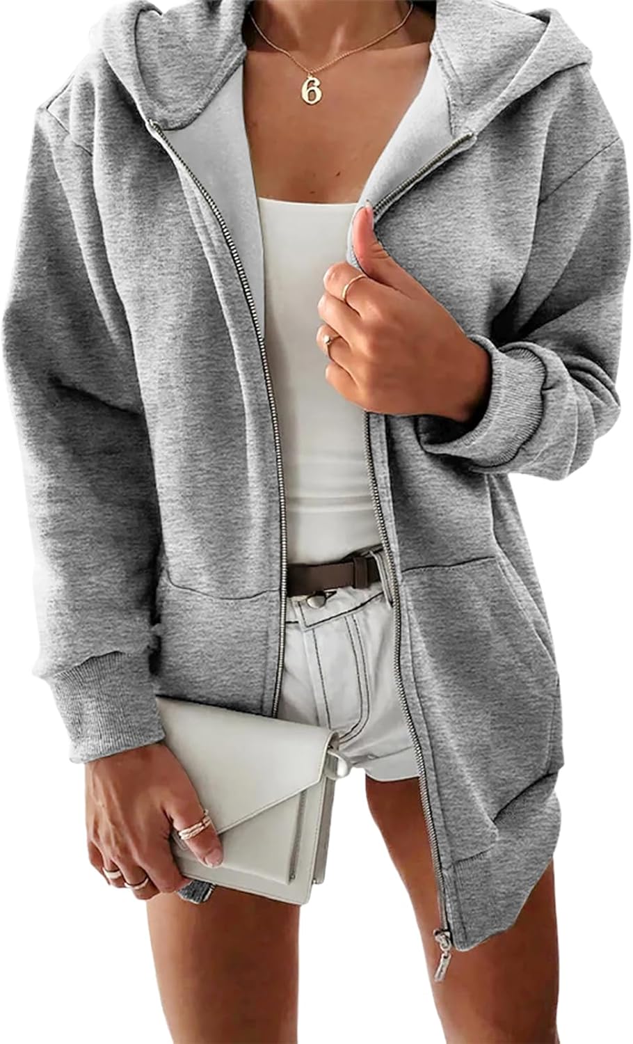 Yousify Women Casual Full Zip Up Plush Hoodie Comfy Loose Solid Sweatshirt Long Sleeve Jacket with Pockets
