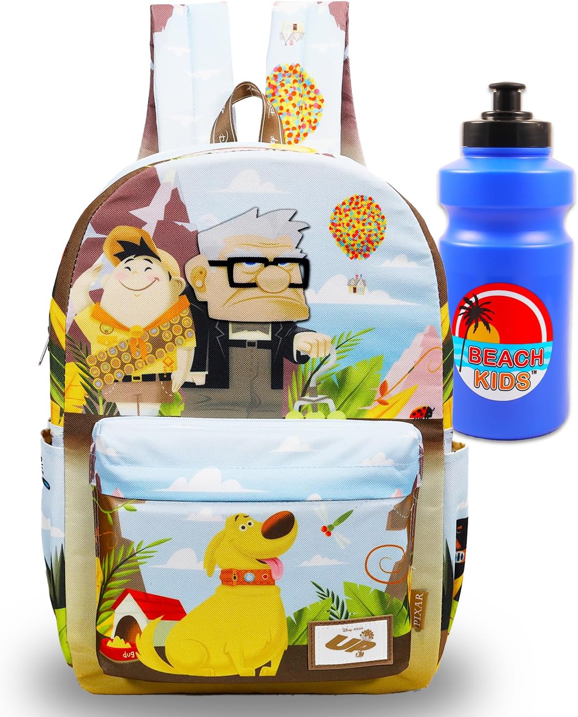 - This durable Disney Up backpack for kids also comes with a Beach Kids water bottle, ideal for staying hydrated throughout the day. This backpack measures approximately 17" x 12.5" x 5".