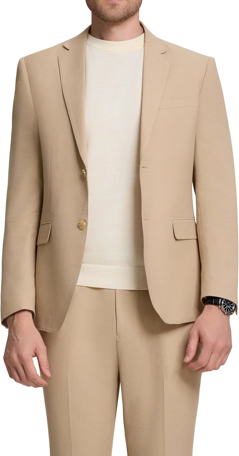 Mens Knit Suit Set 2 Pieces Slim Fit 2 Button Suit Blazer Pants Lightweight Casual Tuxedo Men for Wedding Prom