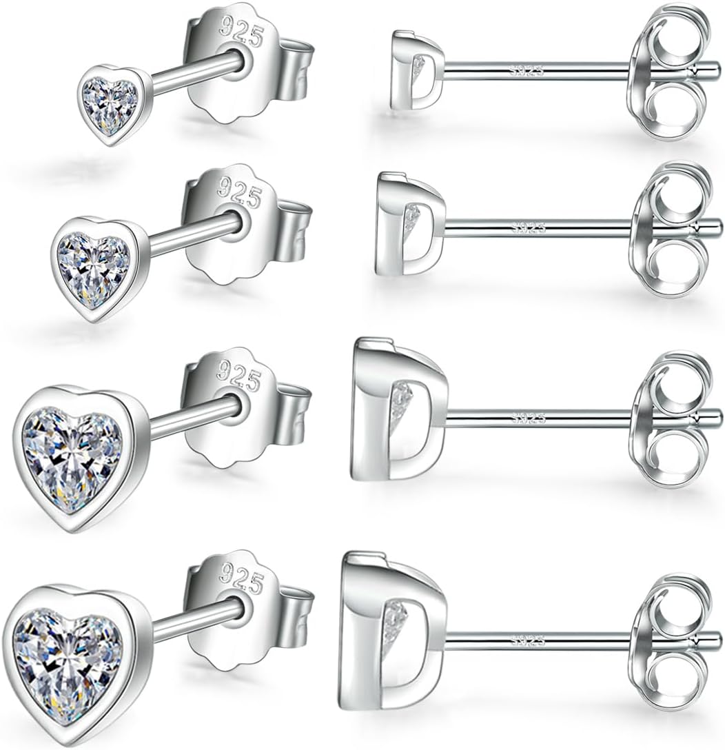 Sterling Silver Stud Earrings for Women Men- 4 Pairs of Hypoallergenic Small White Gold Plated Cubic Zirconia Cartilage Earrings Jewelry Sets (2mm/3mm/4mm/5mm)