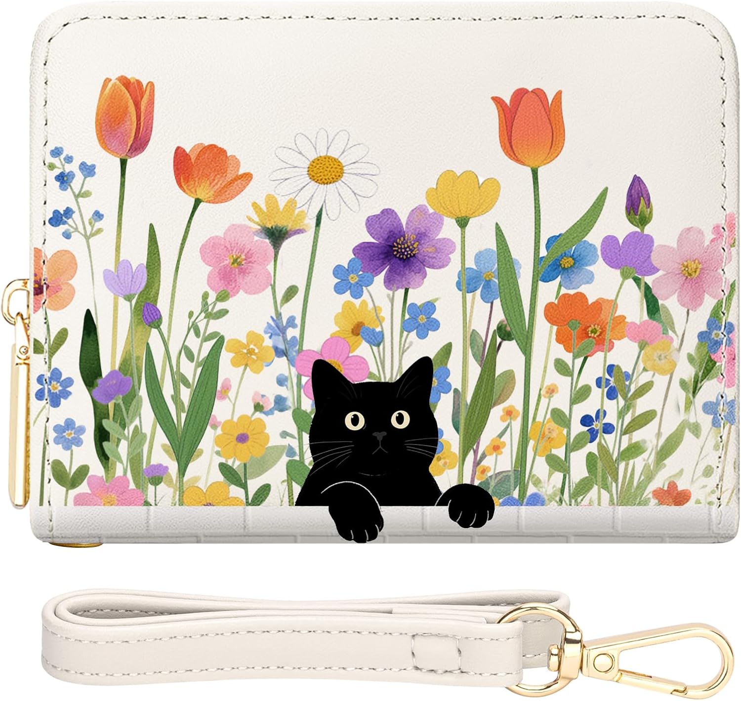 - Designer Small Wallet for Women: Capture the magic of nature with our enchanting small wallet for women. Designed for the modern woman, it features a playful black cat in a vibrant floral garden, creating a unique accessory that's both stylish and serene. This tiny masterpiece sparks joy and complements your personal style, perfect for any day-to-night occasion