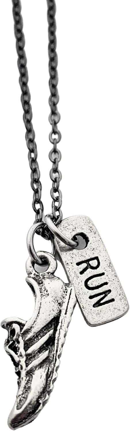 Pewter RUN Necklace - Running Shoe Charm and Pewter RUN Charm on 18 inch Gunmetal Chain