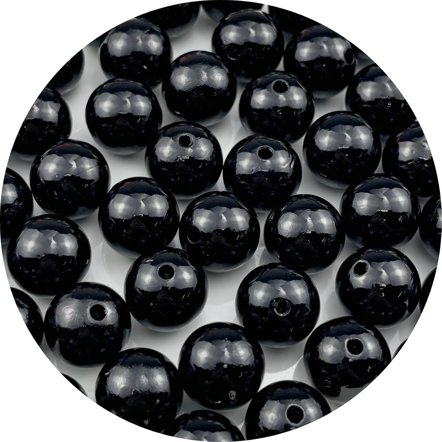 50pcs Pearl Beads for Crafts 16mm Resin Pearl for Jewelry Making Round Bulk Pearls Beads with Hole for Sewing Crafts Decoration Necklaces Bracelets Earrings Making(Black)