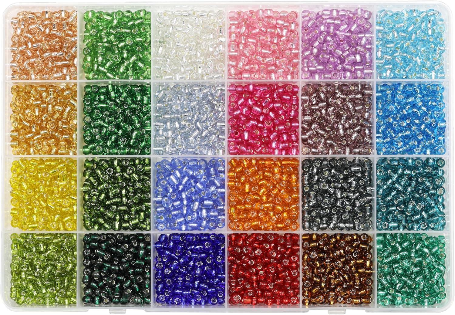 4mm Silver Lined Glass Seed Beads Kit - 3960pcs with Storage Box, 24 Vibrant Colors (165pcs/Color), Ideal for Jewelry Making, Bracelets & DIY Crafts