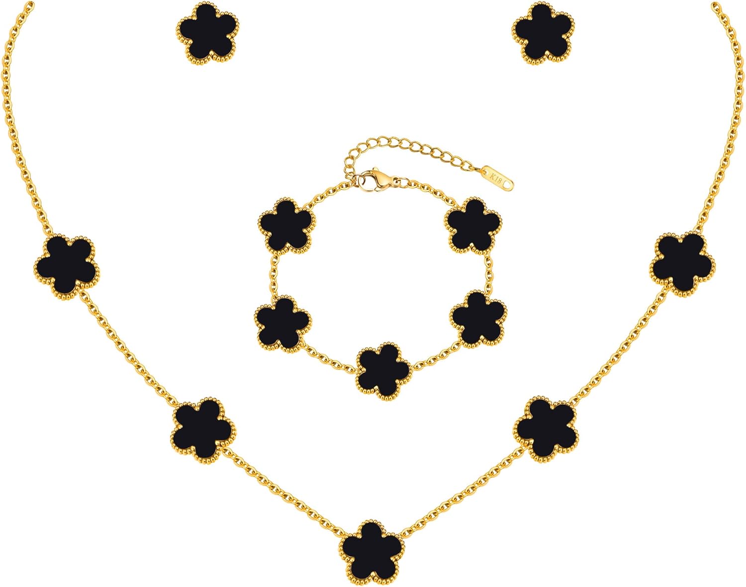 Gold Necklaces Bracelets Earring Set - 18K Gold Plated Flower Bracelet Chain,Stainless Steel Non Tarnish Floral Pendant Stud Jewelry Sets,Christmas Birthday Lucky Gift for Mom Wife Daughter Girlfriend