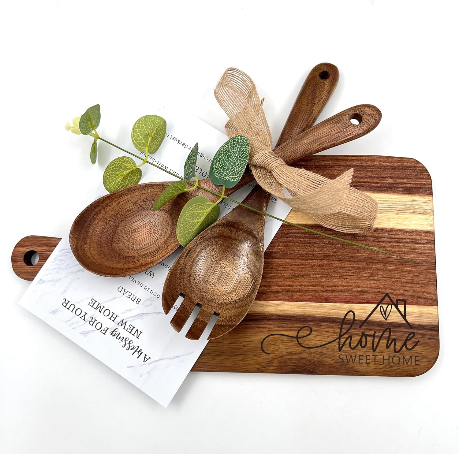 - Cutting Board Set - A beautiful housewarming set, including a total of 3 wooden cutlery gifts, including 1 cutting board, 1 salad spoon, and 1 salad fork.