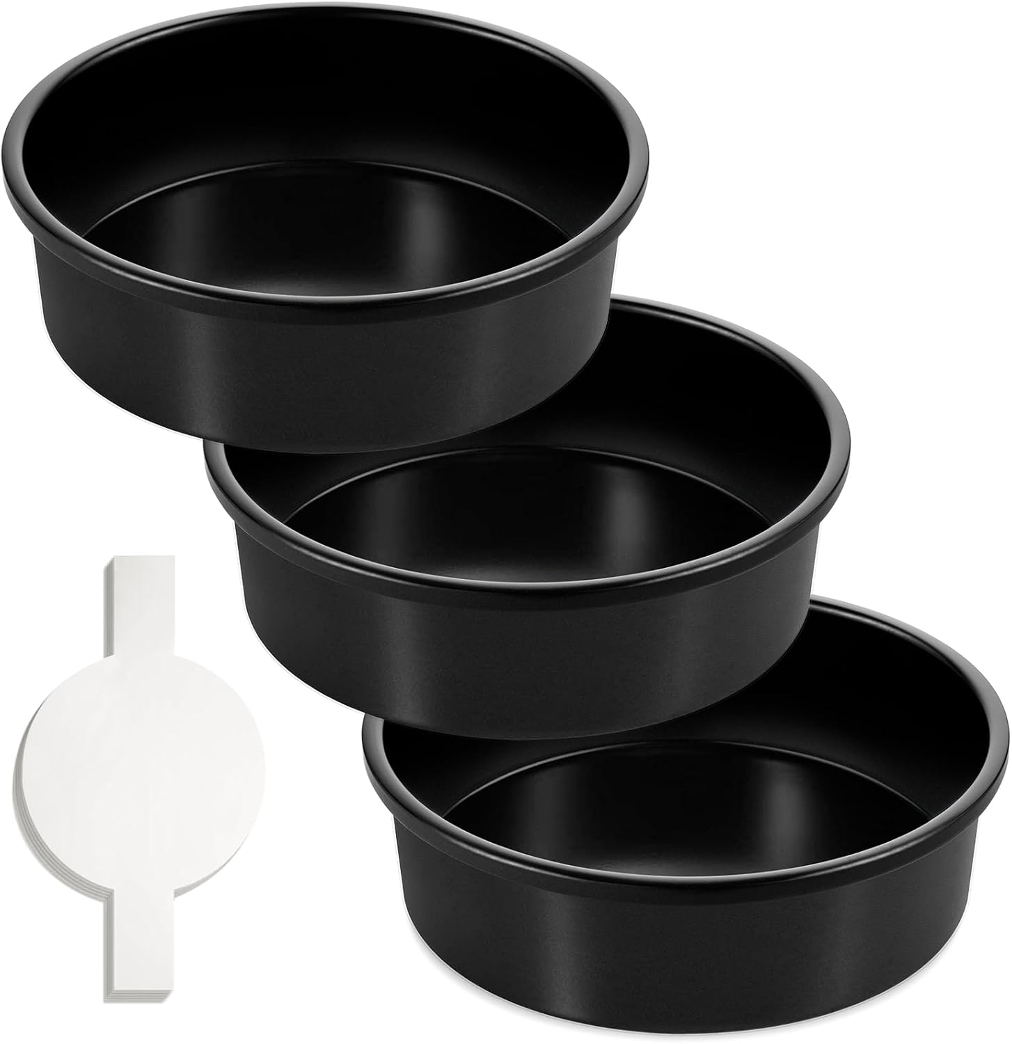 - RAPID & EVEN THERMAL CONDUCTIVITY: AIVIKI cake pans are made of premium quality carbon steel for superior heat conduction and even baking. This round can pan set can withstand oven temperatures up to 550ºF and keep even baking temperatures preventing overbaking or gummy centers. A baking essentials for aspiring baker or professional chef.