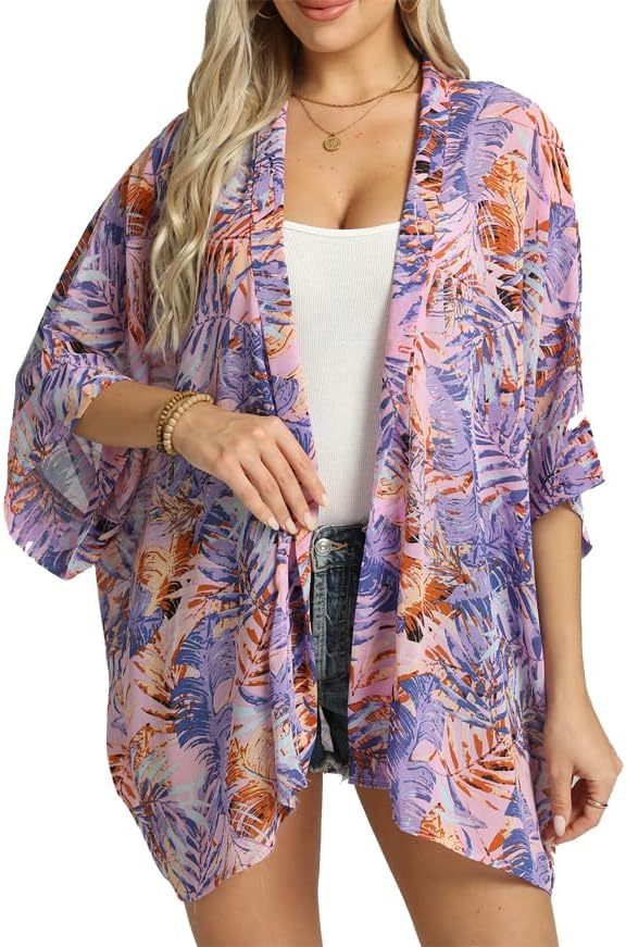 WEIYAN Women's Tops Loose Chiffon Kimono Cardigan Beach Swim Cover up Blouse