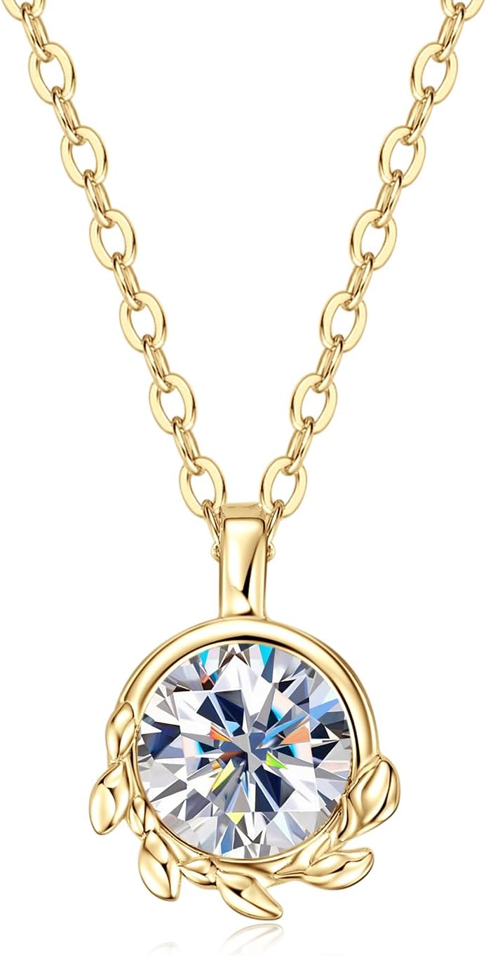 AINUOSHI Moissanite Necklace for Women 1CT - 925 Sterling Silver Moissanite Olive Leaf Pendant Necklace D Color VVS1 Clarity