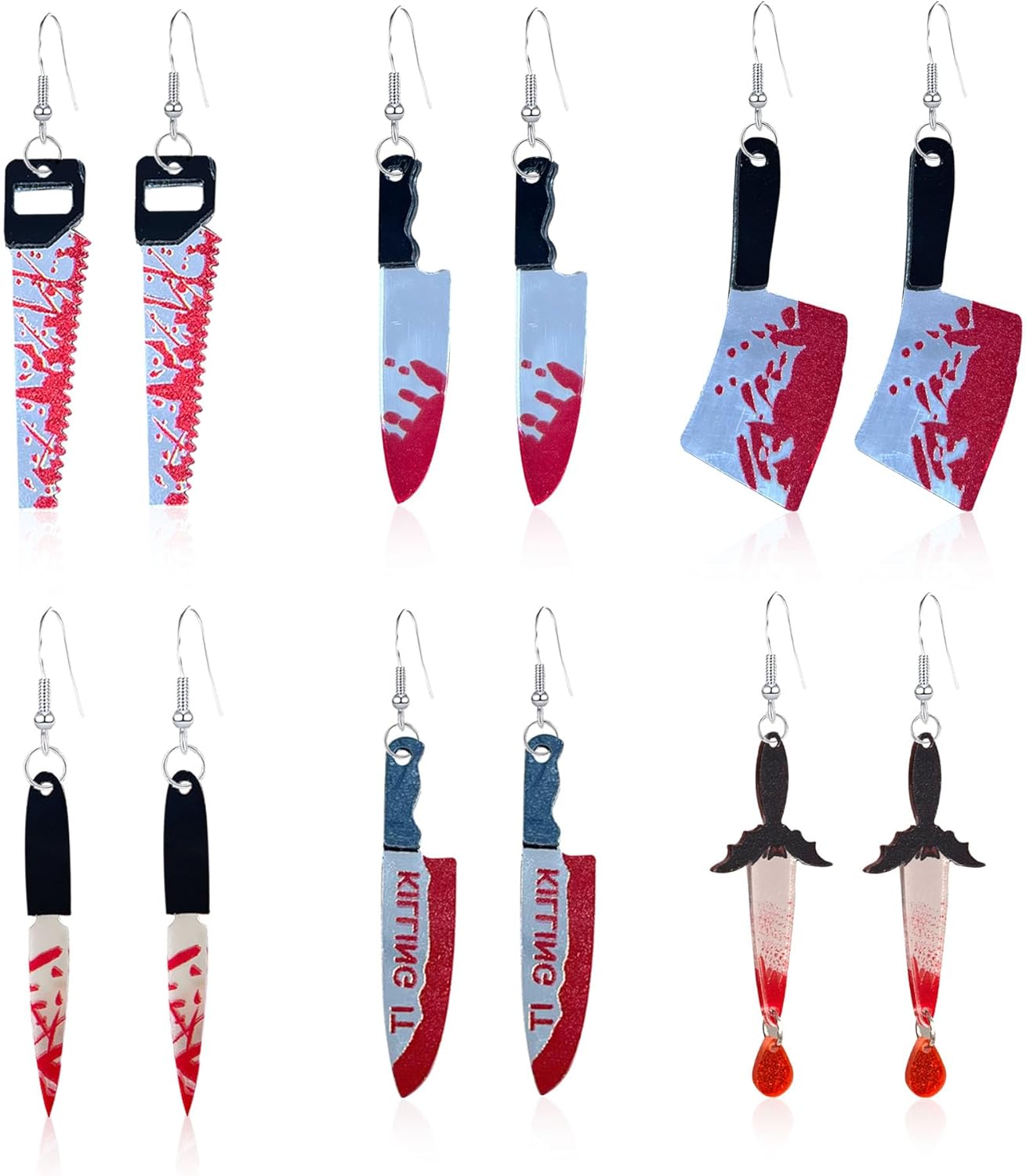 6 Pairs Punk Knife Dagger Drop Dangle Earring Set Gothic Acrylic Printed Knife Earring for Women Girl Teen Hip Hop Halloween Party Jewelry With Box