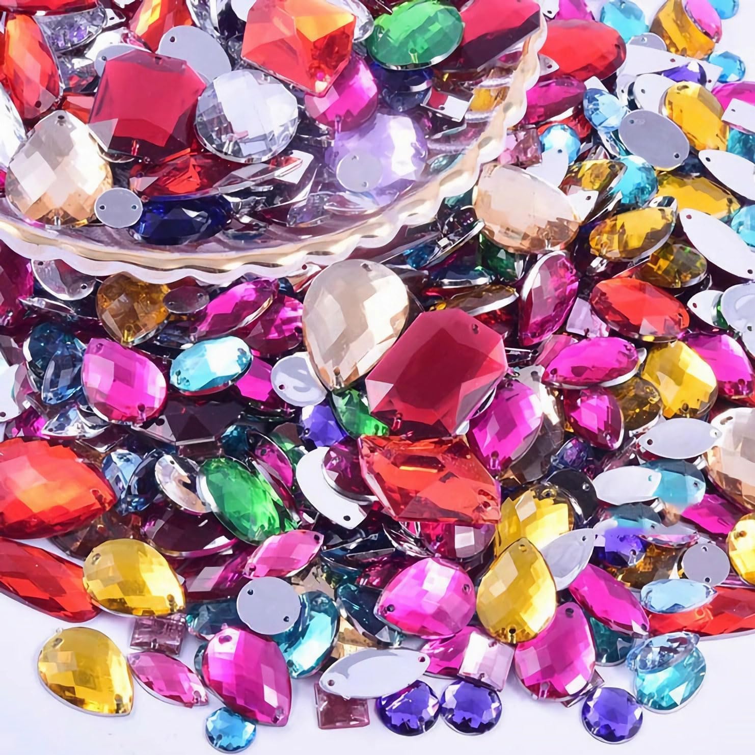 - Extensive use: High quality acrylic rhinestones can sew on fabrics, dress, costumes, hats, T-shirts, tulle, belts, shoes, bags, wedding gowns, handicrafts, headpieces, art projects or any other craft, making your outfit more personalized and letting you look more attractive.