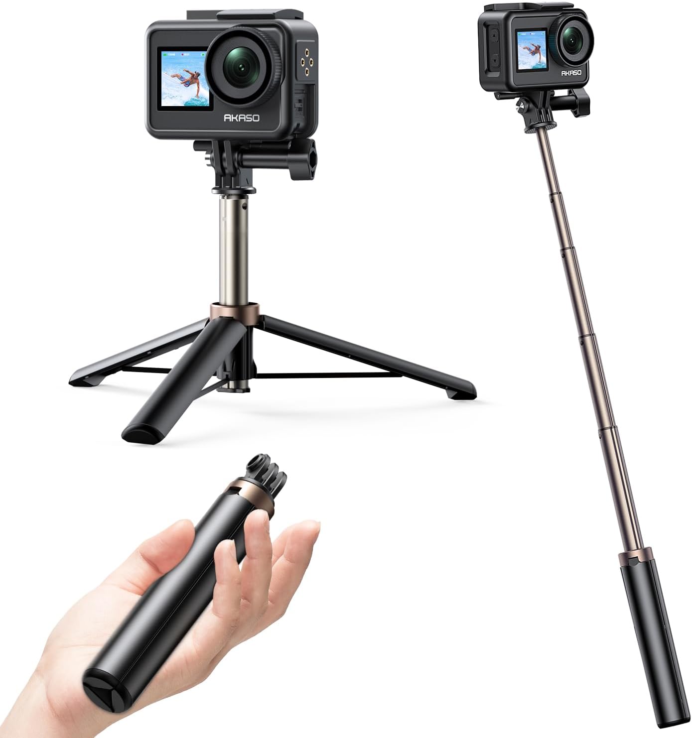 - The selfie stick tripod is compatible with AKASO Action Camera EK7000/EK7000 Pro/Brave 4/Brave 4 Pro/Brave 7 LE/Brave 7/Brave 8/Brave 8 Lite/V50X/V50 Pro/V50 Elite/GoPro Hero 13/12/11/10/9/8/Max/DJI Osmo Action 5/4/3/ICEFOX action cameras. Note: Action camera is not included.