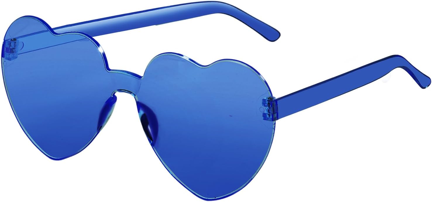 - HIGHLIGHT YOUR CHARM: You will receive 12 pairs colorful heart shaped rimless sunglasses for blue theme parties and more occasions. Our trendy rimless heart glasses comes with bright transparent candy color and heart shaped rimless frame,vibrant colors and one--piece design make you more charming and eye catching in any occasions