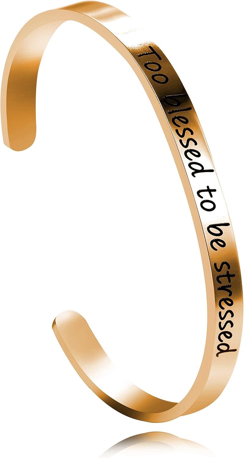 Uloveido Stainless Steel Inspirational Bracelets for Women Engraved Personalized Mantra Initial Motivational Cuff Bangle Y460