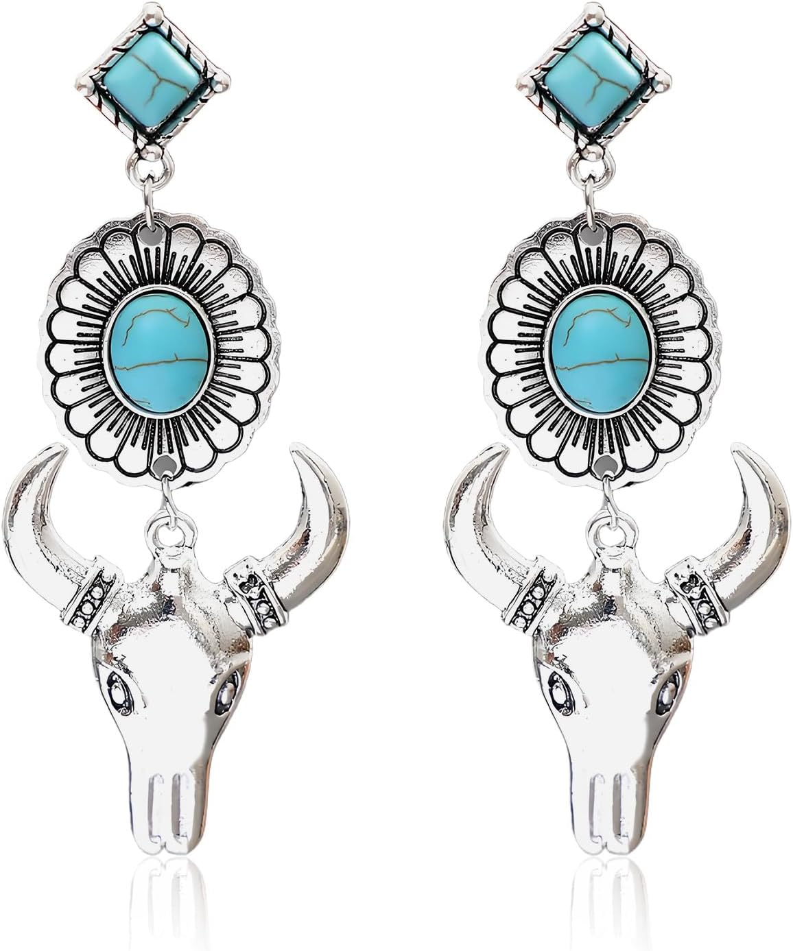 Western Jewelry Turquoise Earrings for Women Silver Western Earrings Country Concert Outfits for Women Cowboy Chic Rodeo Outfit Shirts Dress Accessories