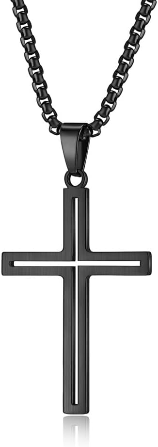 Cross Necklace for Men,Stainless Steel Silver/Gold/Black Crucifix Cubic Zirconia Pendant Necklace Jewelry,60cm Rolo Chain