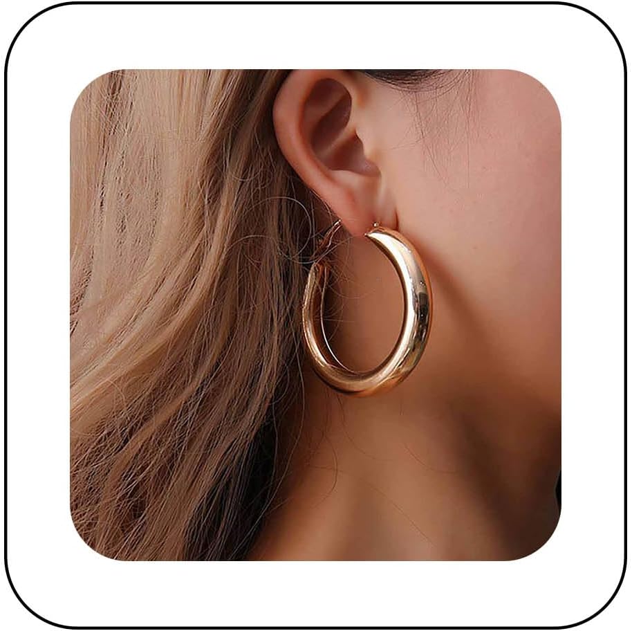 Punk Circle Dangle Earrings Gold Hollow Circle Stud Earrings Gold Wide Circle Hoop Earrings Chunky C Shape Hoop Earrings Jewelry for Women Gifts