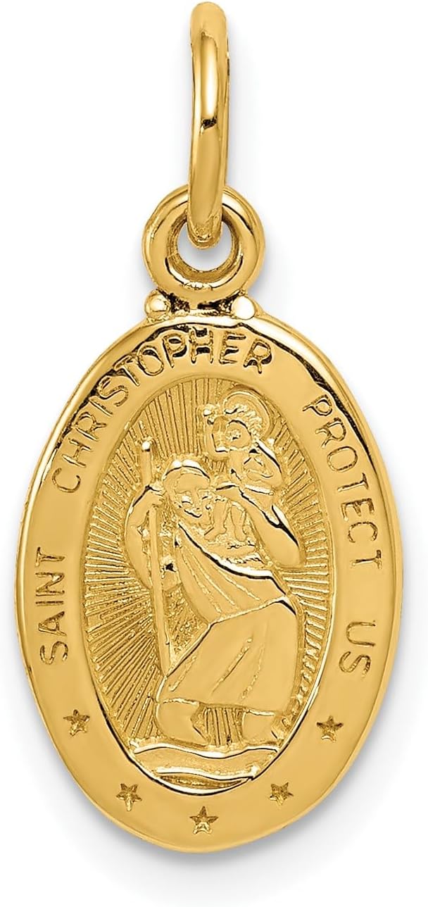 14k Yellow Gold Saint Christopher Medal Necklace Oval Medallion Pendant for Travel Blessing and Protection Catholic Religious Jewelry with High Polish Finish Symbol of Faith and Spiritual Strength