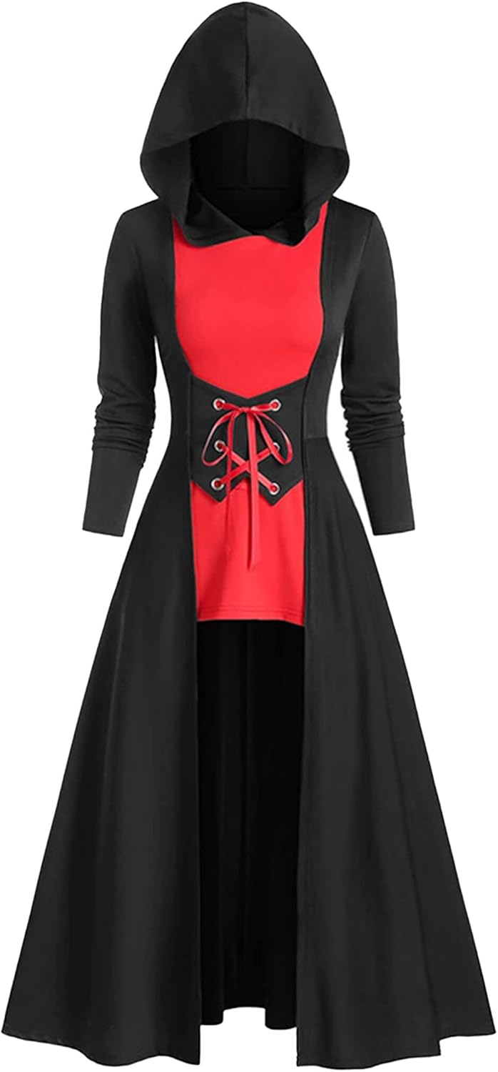 FEOYA Gothic Hooded Sweatshirt Dress for Women High Low Medieval Cloak Robe Steampunk Halloween Dresses Pullover