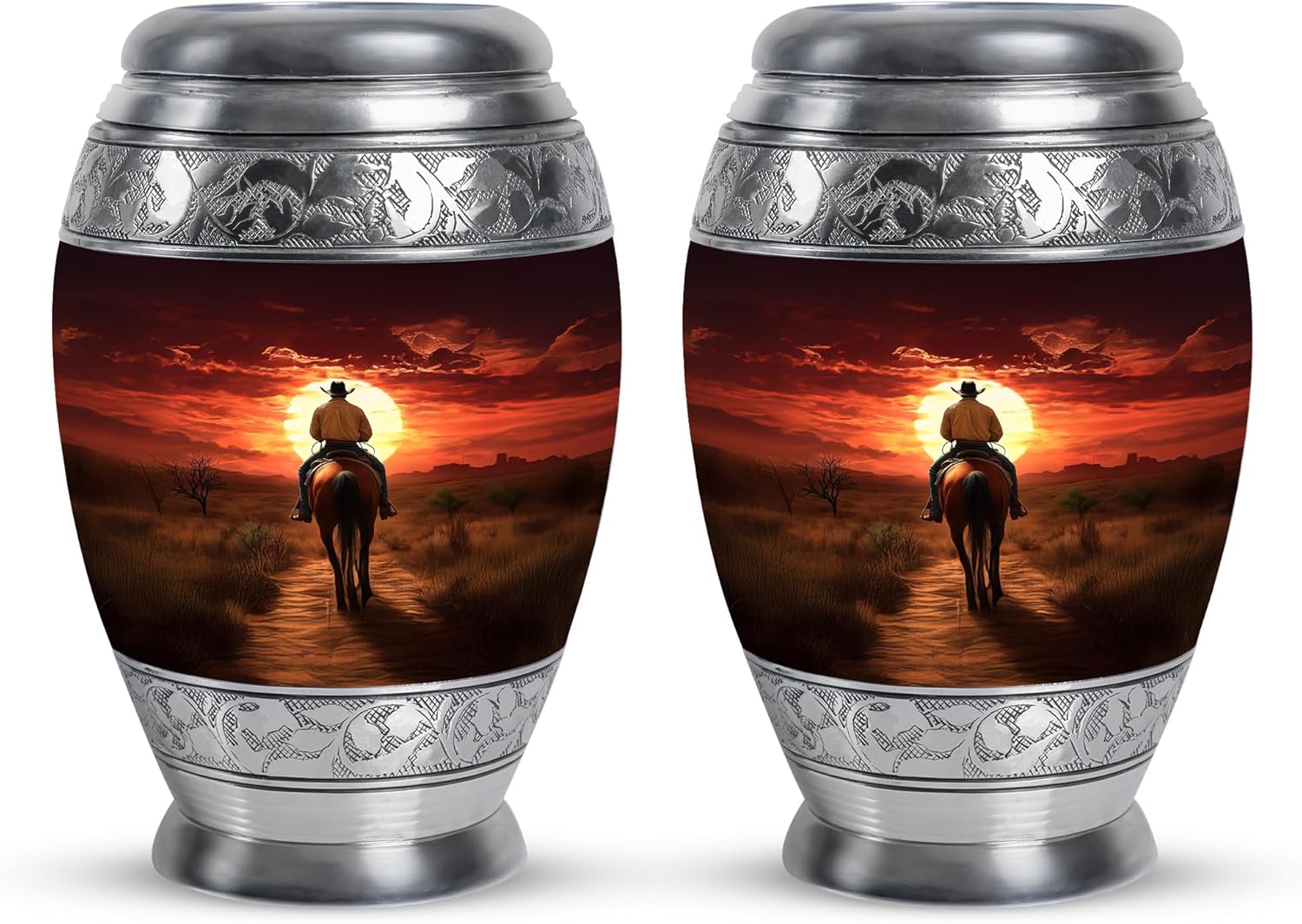 Cowboy Urn for Ashes - Small Cremation Urns for Human Ashes Adult Male Dad - Mini Urns for Human Adult Female - Keepsake Urn for Women(Size - 3inch - 2 Pcs)