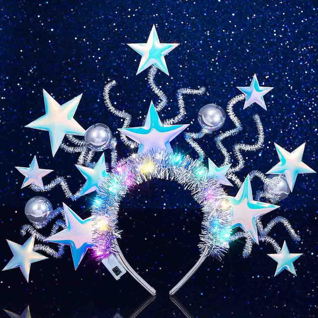 DRESBE Light Up Star Headband Rave LED Headbands Glow Party Hair Accessories for Women