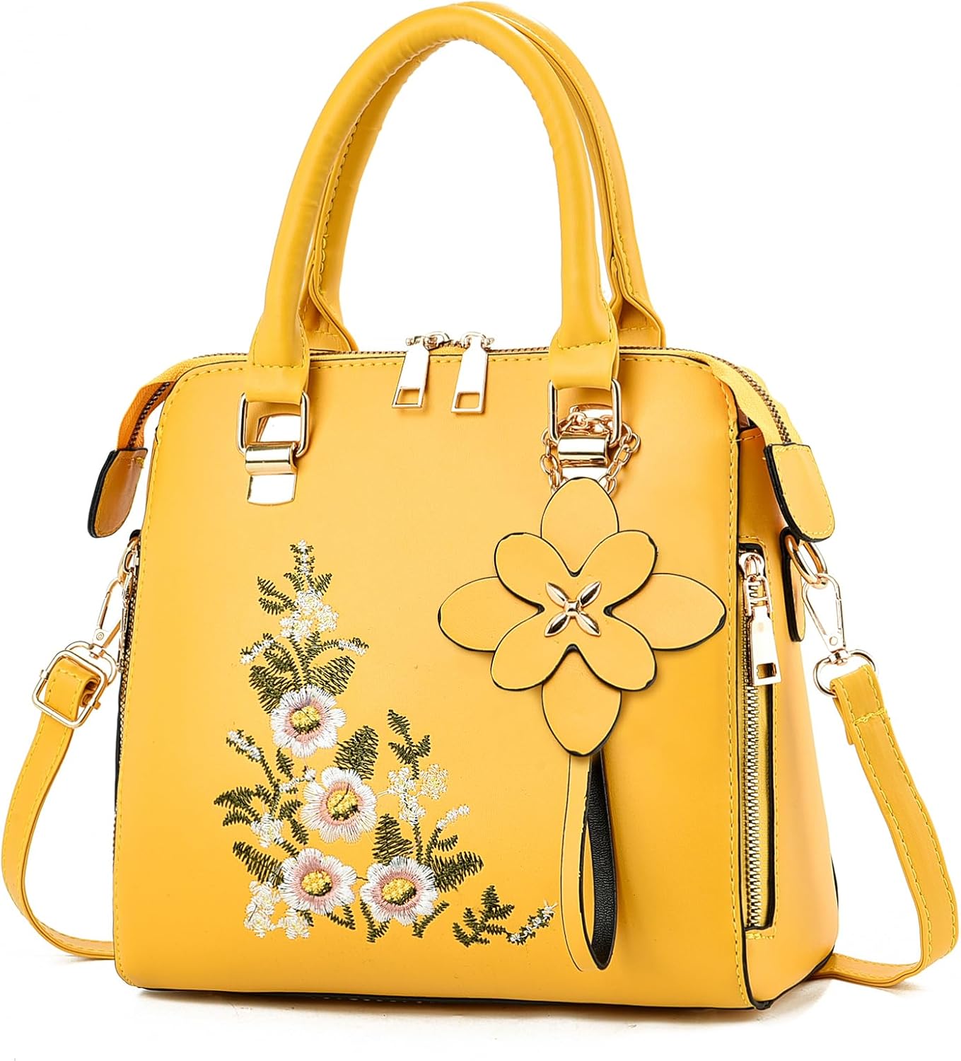 Women Embroidered Satchel Top Handle Purses and Handbag Lightweight Totes Crossbody Shoulderbag for Lady