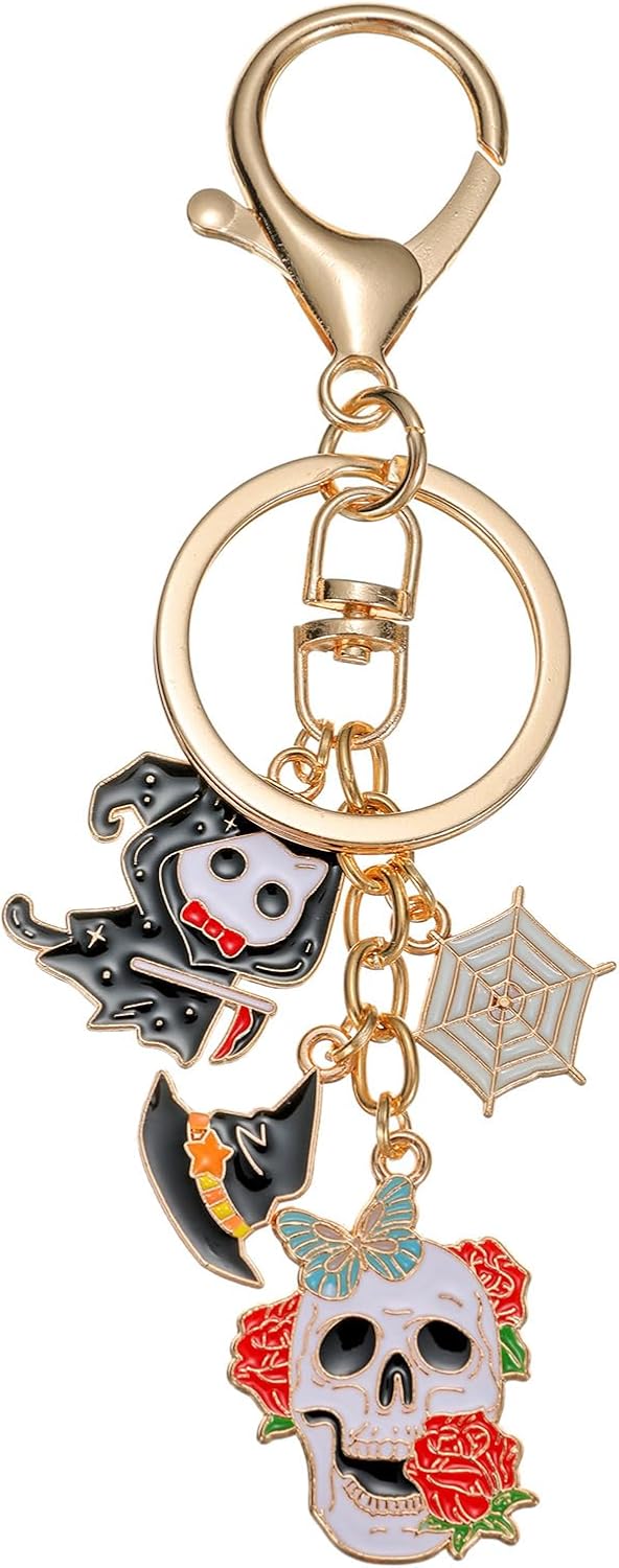 Halloween Keychain Charms Accessories, Pumpkin Bat Spider Web Skull Key Ring for Men Women Car Bag Purse Decor