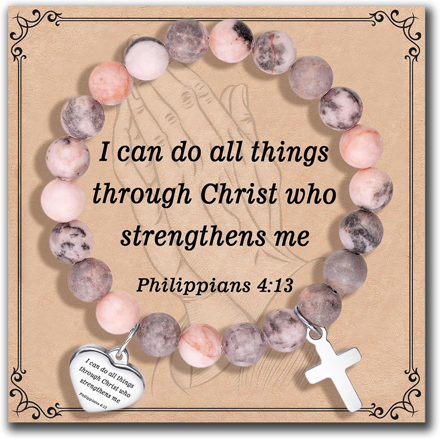 XOYOYZU Inspirational Gifts Bracelets for Women Cross Bracelets with Natural Stone Christian Bible Verse Bracelet Prayer Faith Religious Jewelry