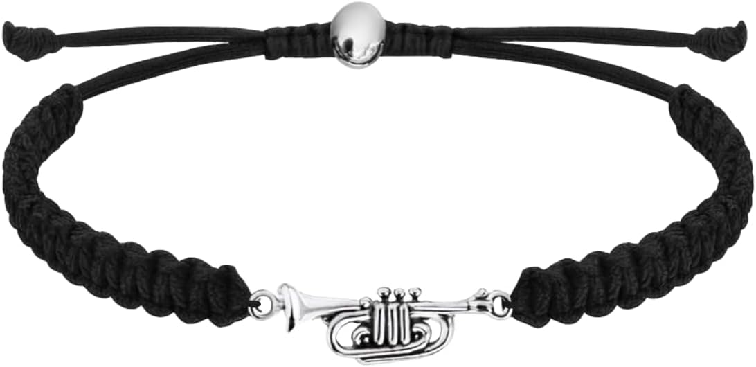 Infinity Collection Trumpet Bracelet for Musicians – Adjustable Black Braided Cord with Silver Trumpet Charm – Band Jewelry Gift for Trumpet Players, Teachers, Marching Band, and Music Lovers