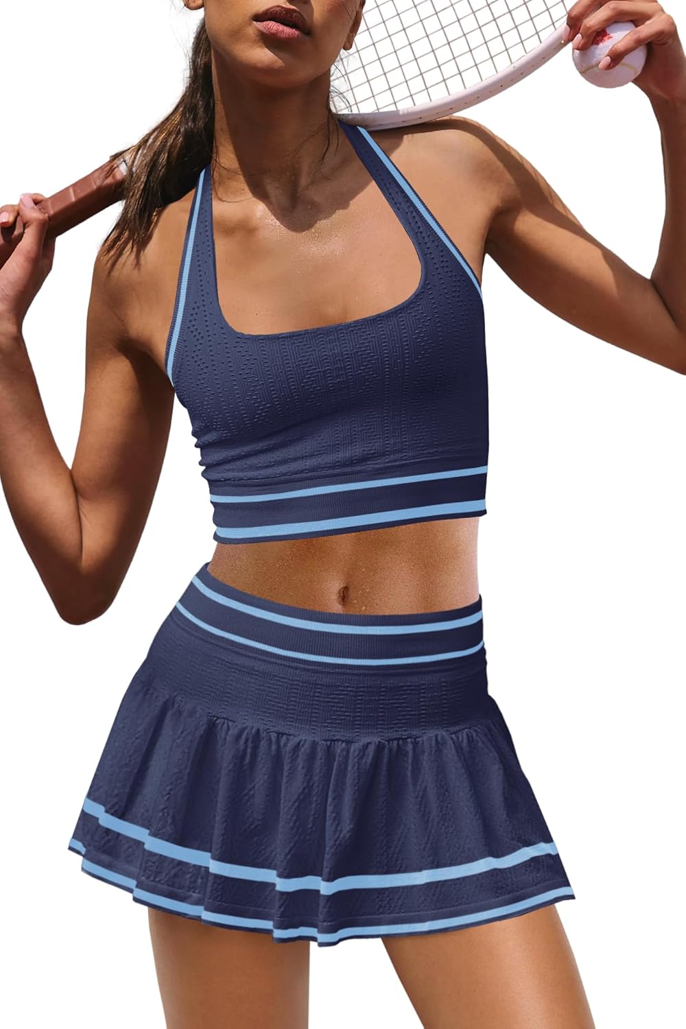 Panadila Women 2 Piece Tennis Skirt Sets Athletic Sets Halter Sports Bra and Mini Skort Pickleball Outfits