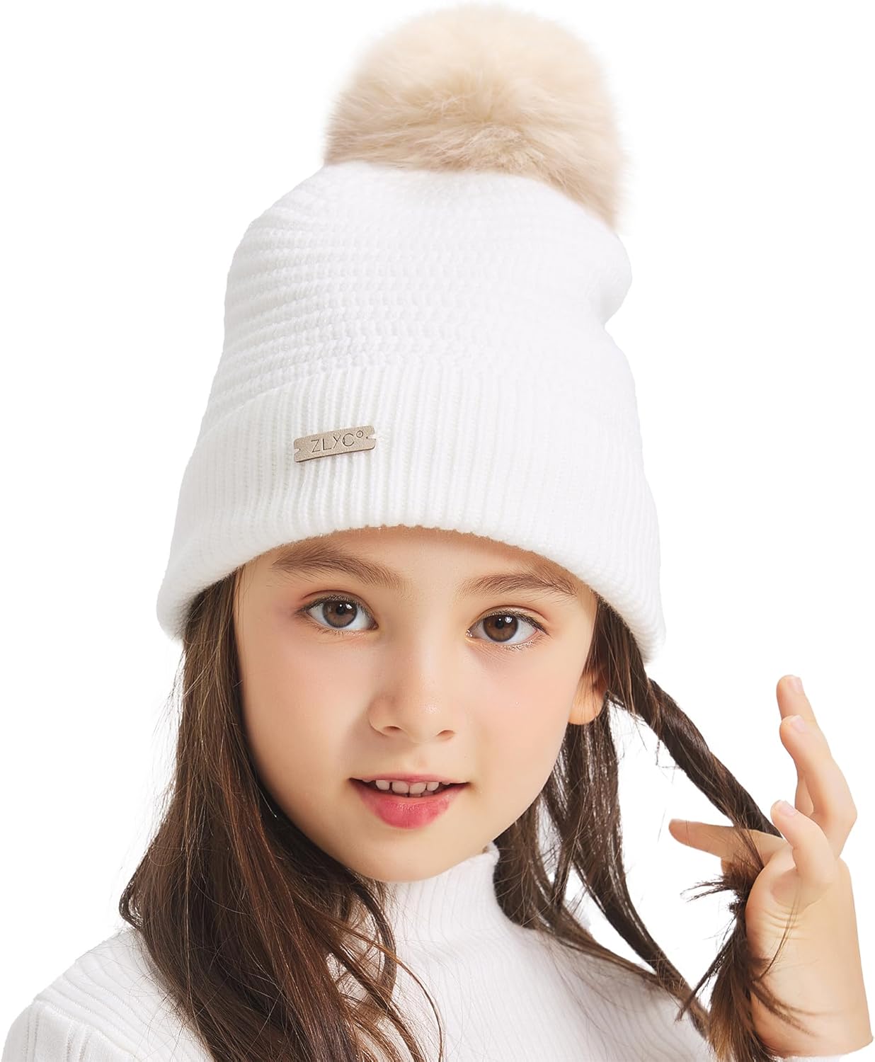 ZLYC Kids Winter Hats for Girls Boys Pom Pom Beanie Hat Cotton Lined Knitted Cap