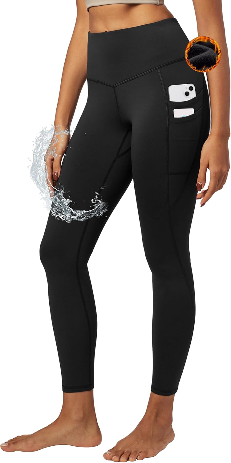 IUGA Water Resistant Fleece Lined Leggings Women Warm Winter Thermal Pants with Pockets for Hiking Yoga