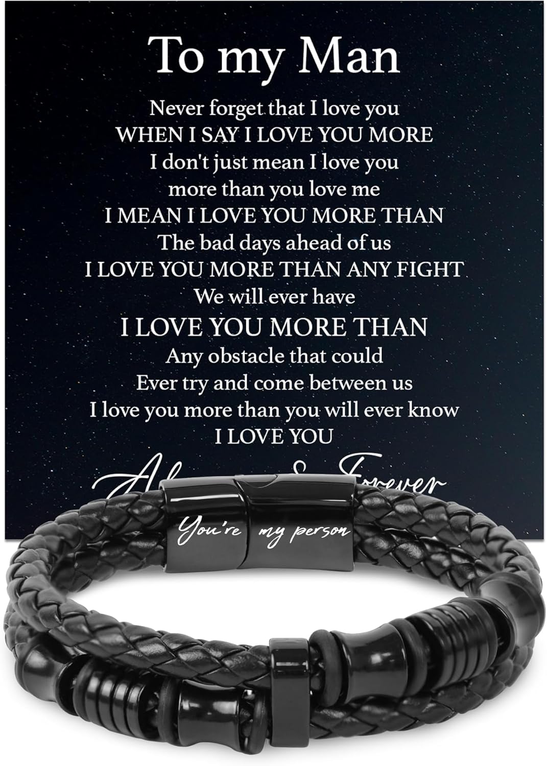 TEEZWONDER Bracelet Gifts For Men Dad - Double-Row Black Braided Leather Bracelet - Christmas Birthday Gifts For Him, Wedding Anniversary Presents for Husband from Wife