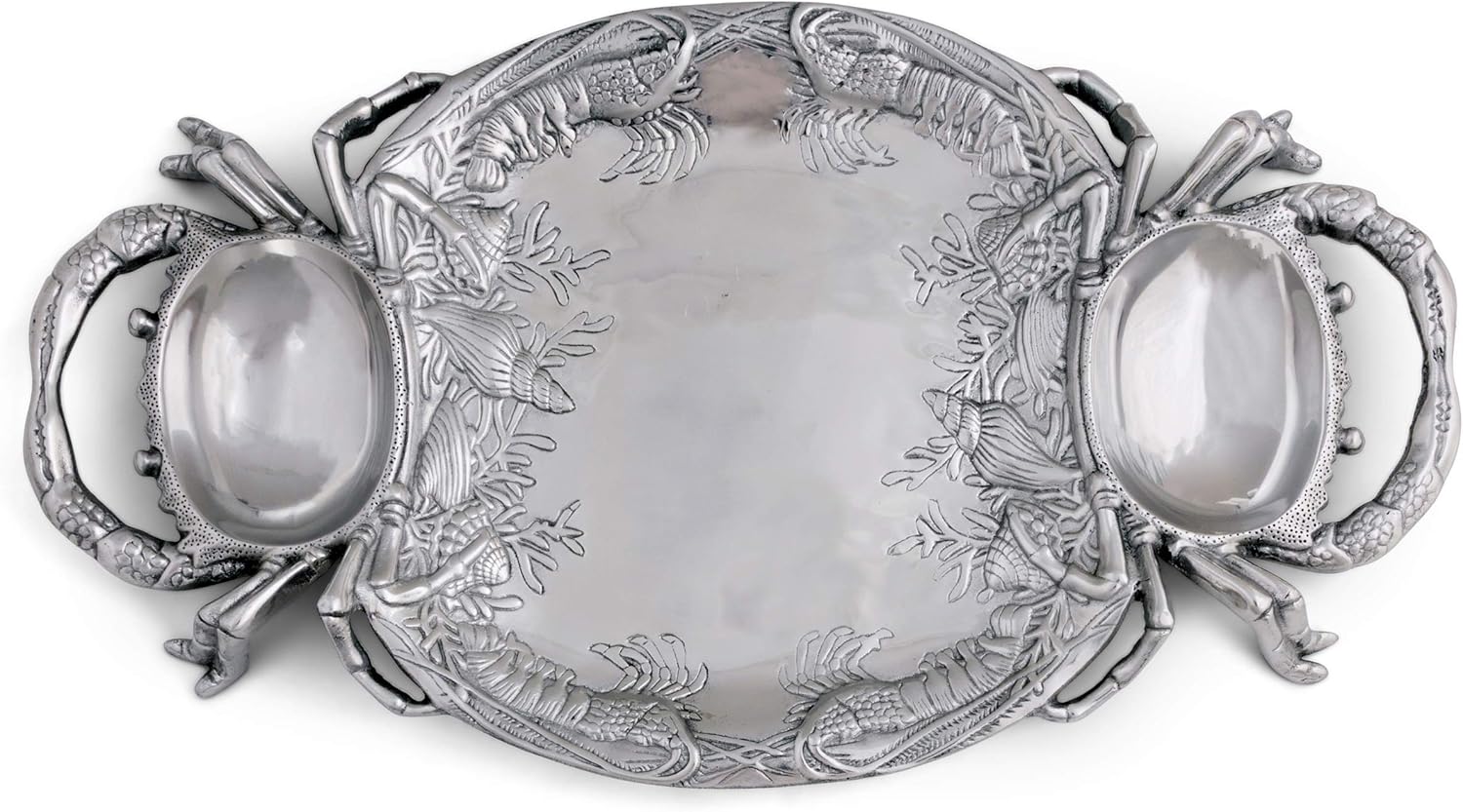 Arthur Court Aluminum Metal Crab Platter/Tray Heavy Quality Coastal Décor for Serving Food and Drinks 24 inch x 13.5 inch