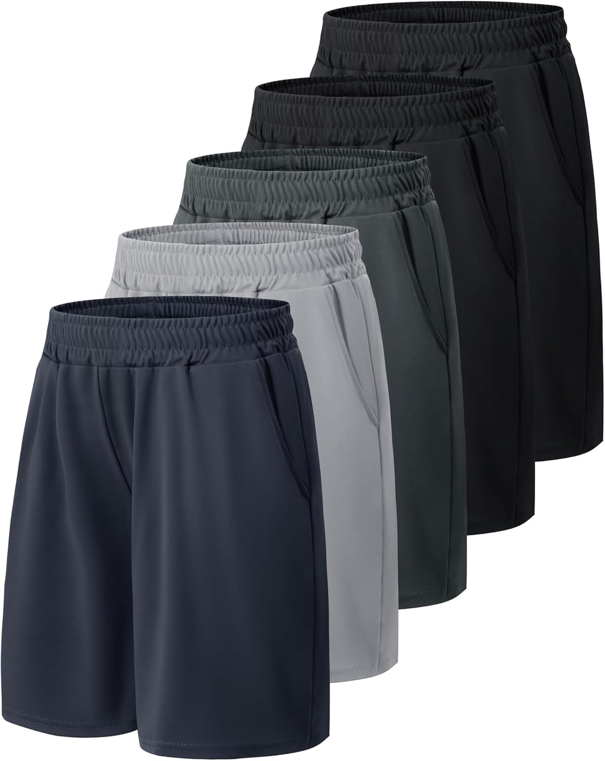 5 Pack Athletic Basketball Boys Shorts - Black Quick Dry Kids Youth Teen Shorts with Pockets for Soccer Running