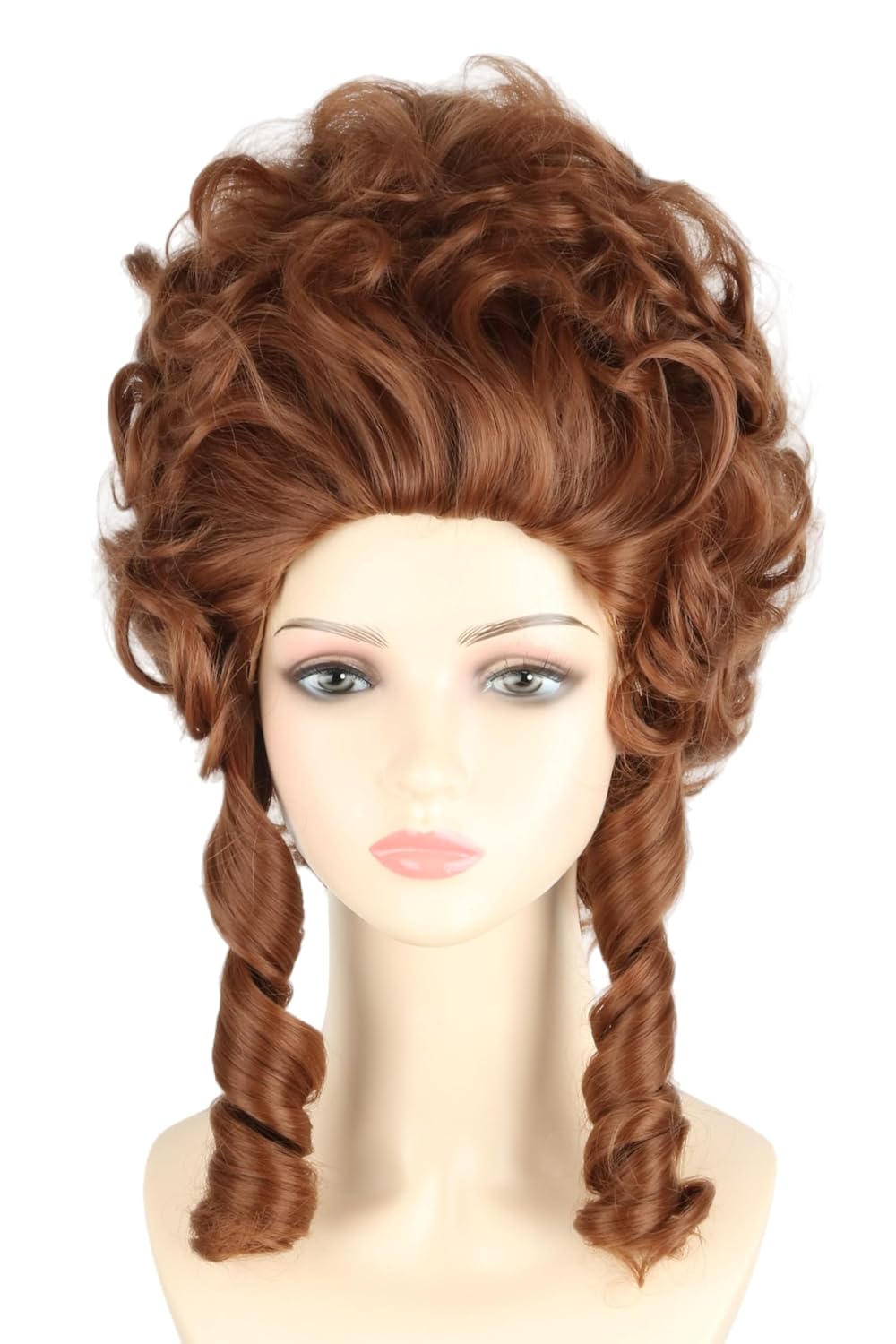 Colonial Wigs for Women Brown Victorian Court Vintage Wig Baroque Fluffy Beehive Wigs Halloween Costume Party Dress Wig