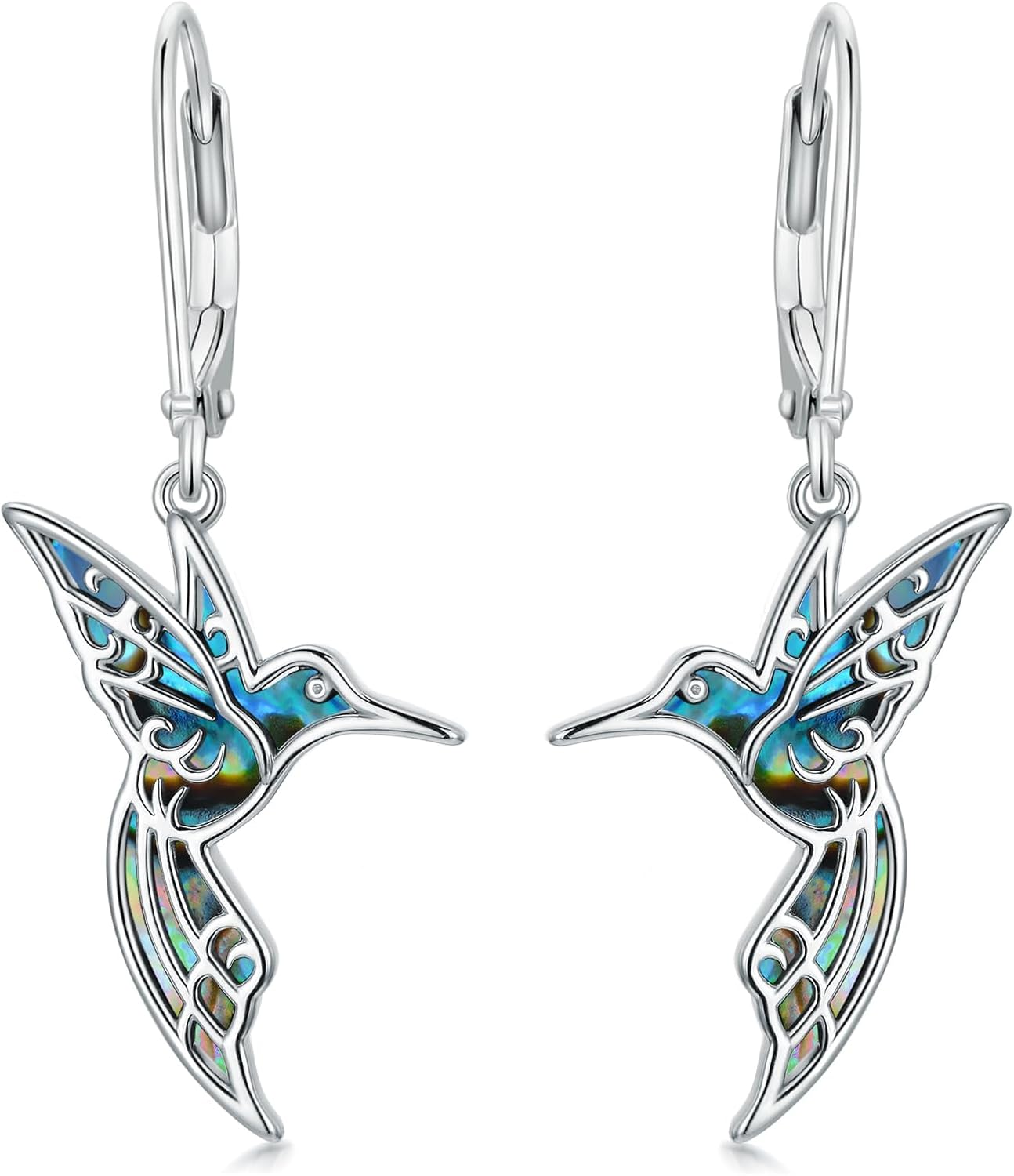 Hummingbird Earrings 925 Sterling Silver Turquoise/Abalone Shell Bird Earrings Dangle Hummingbird Jewelry Gifts for Women Hummingbirds Lovers